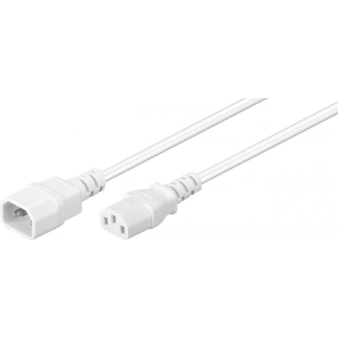 Fehér színű, 0.5 méteres monitor hosszabbító tápkábel. 10A/250V H05VV-F3x10.75mm2 CU Szín: Fehér Csatlakozó 1: C13 anya Csatlakozó 2: C14 apa
