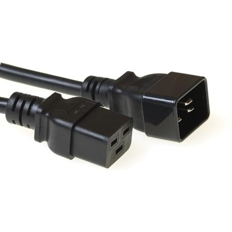 1 méteres C19/C20 tápkábel hosszabbító. Szín: Black Csatlakozó 1: C19 IEC 320 anya Csatlakozó 2: C20 IEC 320 apa Hossz: 1m H05VV-F3x1.5mm2 CU