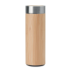Duplafalú rozsdamentes acél termosz bambusz borítással, teaszűrővel. 400 ml űrtartalom. A bambusz természetes anyag, színében, mintázatában és méretében esetenként eltérő lehet. A bambusz természetes anyag, színében, mintázatában és méretében esetenként e