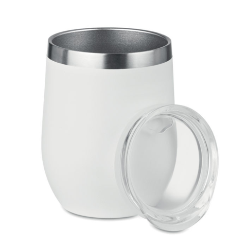 300 ml duplafalú, 304-es osztályú rozsdamentes acél bögre, borospohárként is használható.