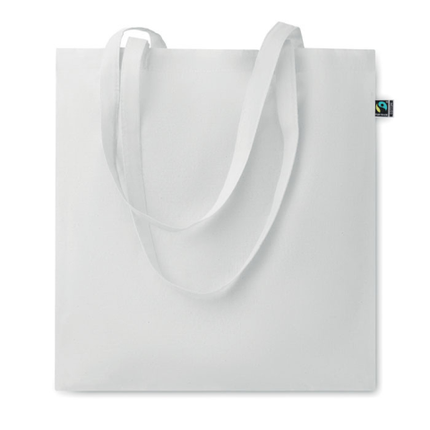 Festett Fairtrade pamutból készült bevásárlótáska hosszú fülekkel. 140 g/m² vastag anyag.
