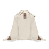 Vastag, újrahasznosított pamutból készült húzózsinóros táska, hátizsák fehér natúr színben, stílusos barna megerősítésekkel a sarkain. Plusz tároló rész az egyik oldalon. Mérete: 38x42cm Anyagvastagság: 220 g/m2 Az újrahasznosított pamut táskák összegyű