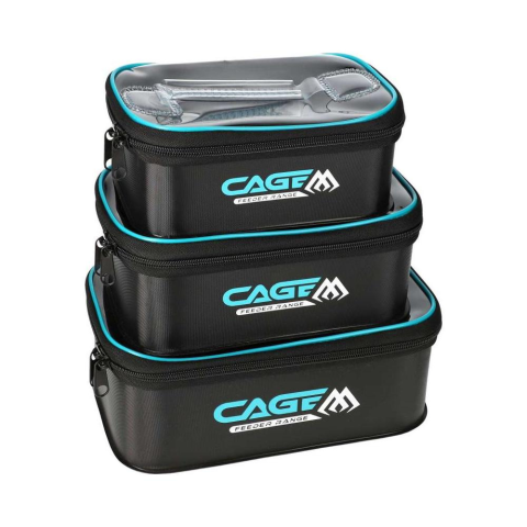 Egy három darabos vízálló EVA szettből álló táskacsomag a megszállot feeder horgászok számára. A három különböző méretű táskában minden szükséges kiegészítő, illetve csali elfér és annak érdekében, hogy minél gyorsabban megtaláljuk a szükséges kiegészítőt, minden táska zip-záros teteje átlátszó.