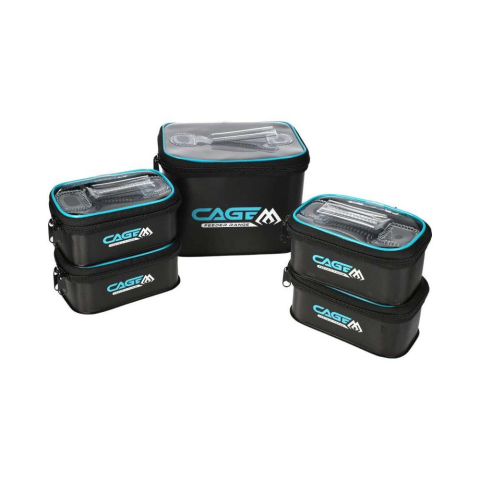 Egy öt darabos vízálló EVA szettből álló táskacsomag a megszállot feeder horgászok számára. A három különböző méretű táskában minden szükséges kiegészítő, illetve csali elfér és annak érdekében, hogy minél gyorsabban megtaláljuk a szükséges kiegészítőt, minden táska zip-záros teteje átlátszó.