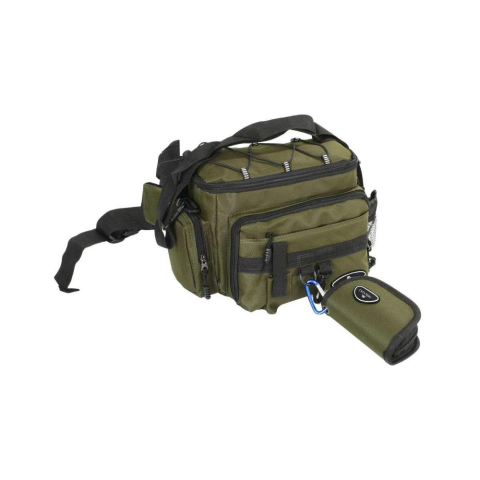 Kis méretű táska kiváló minőségű, megerősített és szigetelt anyagból. Kivehető rekeszekkel és kiegészítő zsebbel ellátva, amely tökéletesen tartalmazza az aktív horgász praktikus tartozékarzenálját.hossz: 29 cmszélesség: 15cmmagasság: 20 cm