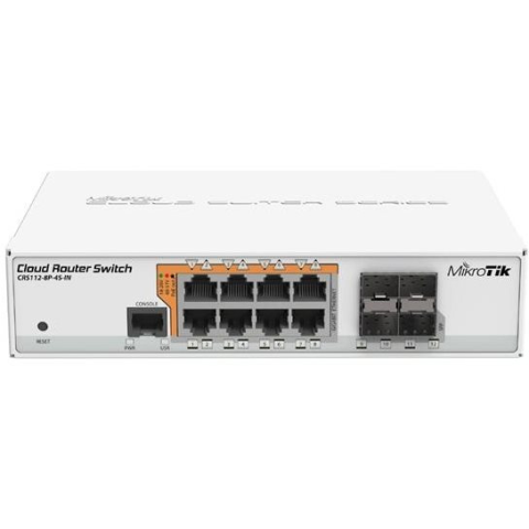 Switch - desktop, 8× RJ-45, 4× SFP, PoE, 802,3at (PoE+) támogatás, 8 PoE bemenet, 24 Gb/s váltókapacitás, 8 port 1 Gbit sebességgel, üzemi hőmérséklet -20 - 60 °C, mérete 44 × 200 × 142 mm (Ma×Sz×Mé) A CRS sorozat ötvözi a csúcskategóriás útválasztókat és az L3 switcheket, valamint részletes beállításokat kínál a jól ismert, L5 színtű RouterOS rendszerben, amely megtalálható a Microtik hál