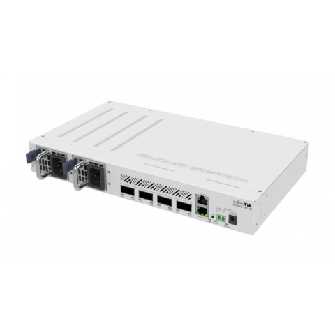 CRS504-4XQ-IN Cloud Router Swtich 1x 100 Mbps ethernet porttal és 4x 100 G QSFP28 porttal.