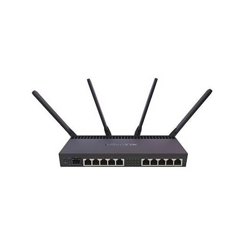 Router - desktop, 4magos processzor 1400 MHz frekvenciával, NAT és IPv6 protokoll támogatás, firewall, WPA2 biztonsági szabványok, QoS funkciók, portok: 10× RJ-45, 1× SFP+, 10× 1Gbit LAN port, 44 W összteljesítmény, 2× PoE port, hálózati és PoE tápellátás, 1000 MB rendszermemória, 512 MB flash tárhely, méretei 30 × 228 × 120 mm (ma × szé × mé) A MikroTik RB4011iGS + 5HacQ2HnD-IN router egy 1400 MHz-es órajelű quad-core óra processzorral és integrált hardveres gy