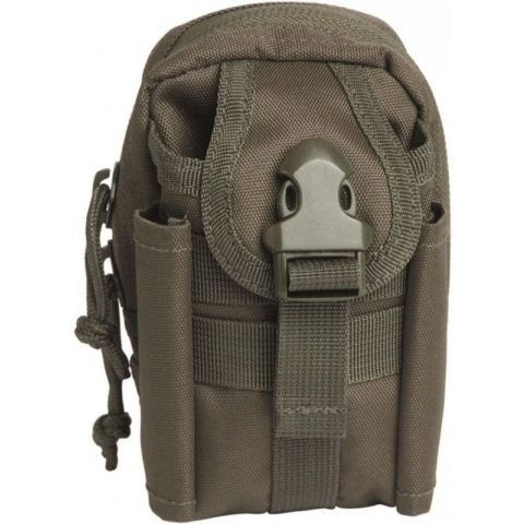 Kis méretű tok nadrágszíjakra vagy taktikai övekre Erős gyöngyvászon anyagból készült övtok, mely alkalmas mobiltelefon vagy akár gázspray tárolására. MOLLE rendszerű pántokkal akasztható az övünkre. Részei Elöl a széleken 1-1 hosszúkás, alul nyitott zseb, pl. golyóstoll részére. 1 db csattal zárható zseb az elején: a csat állítható, így akár okostelefon is tárolható benne kb. 5" képátmérő méretig. 1 db nagyobb, kétkocsis cipzárral záródó
