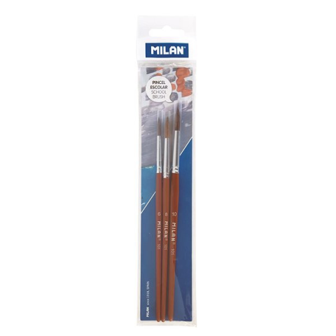 Ecset - három 101-es ecsetből álló készlet, méretek: 6, 8,10, kerek hegyű, 70% természetes sörték és 30% szintetikus szálak kombinációja, fa test, fém markolat, iskolai használatra alkalmas, akvarell és tempera festéshez