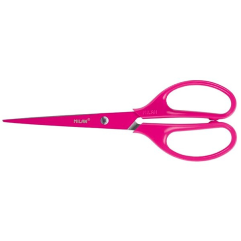 Papírvágó olló - éles heggyel, jobb- és balkezesek számára egyaránt használható, műanyag markolattal, rozsdamentes acél anyagú pengével, teljes hossza 17 cm, sárga és rózsaszín színben Az olló nélkülözhetetlen kellég egy irodában és otthon. Segítségével tudod elvágni a papírt, vághatsz vele egy darab zsinórt, vagy megfelelő hosszúságú ragasztószalagot. A jól kihasználható MILAN olló