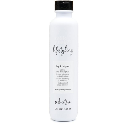 Hajzselé - professzionális kozmetikum, fixáló hatás, minden hajtípusra ajánlott, erős fixálás, 250 ml-es kiszerelés A MILK SHAKE Lifestyling Liquid Styler egy könnyű styling gél, amellyel tökéletes frizurát érhetsz el természetes fényességgel és rugalmas rögzítéssel. Ideális a haj természetes textúrájának formázásá