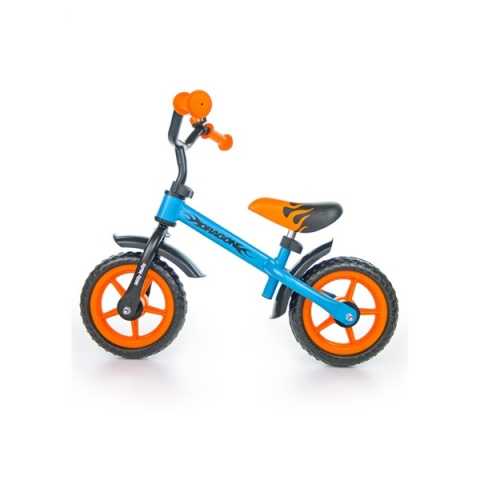 Milly Mally Dragon gyerek futóbicikli. Az ülés magassága állítható, csakúgy mint a kormány magassága. Stabil és könnyű acélkonstrukció. A kormány csúszásmentes gumifedéssel ellátott. Az ülés puha és kényelmes. 10-os szivacsos kerekei vannak. Csengővel ren