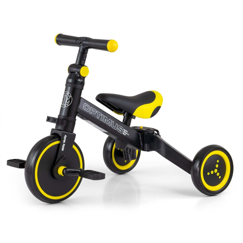 Univerzális gyermek pedálos tricikli Milly Mally Optimus 3az1-ben. Stabil konstrukciójának köszönhetően a legnagyobb biztonságot nyújtja a gyermekeknek. Ennek a triciklinek a legnagyobb előnye a változékonysága. A habkerekek tökéletesen vezetés közben biz