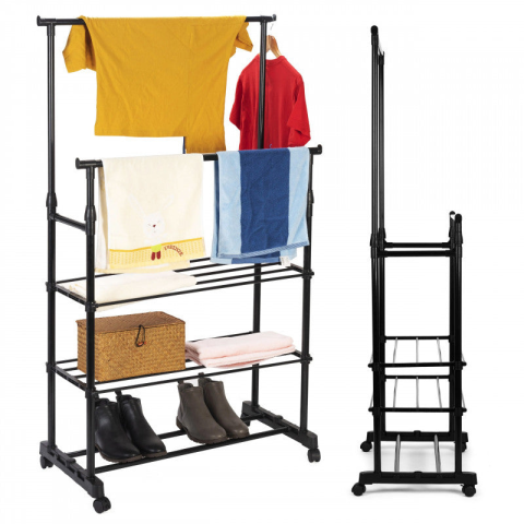 MIM-364 Univerzális ruhafogas kerekekkel, állítható magassággal, 2 rúddal bútor termékleírás