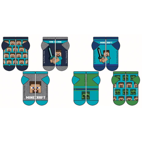 Minecraft gyerek titokzokni 23-38Az ár 3 pár zoknira vonatkozik!Anyaga: 70% pamut + 28% poliészter + 2% elasztán.6 féle minta!Méretek: 23/2627/3031/3435/3832*3 pár/csomagVegyes méret!