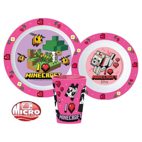 Minecraft étkészlet, micro műanyag szett -BPA Mentes -Származási ország: Spanyolország -A termék környezetbarát, újrahasznosítható anyagból készült a Föld védelmében. Csomagolás nélkül! A készlet tartalma: 1 db mélytálka (Mikrózható műanyag) 1 db lapos