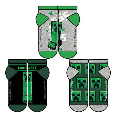 Minecraft gyerek titokzokni Az ár 3 pár zoknira vonatkozik! Anyaga: 70% pamut + 28% poliészter + 2% elasztán. 3 féle minta! Méret: 27/30