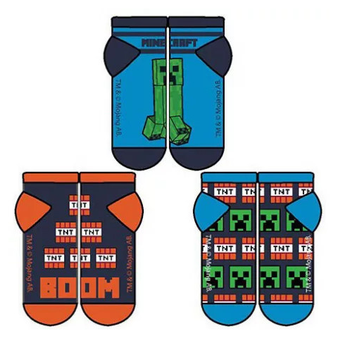 Minecraft gyerek titokzokni Az ár 3 pár zoknira vonatkozik! Anyaga: 70% pamut + 28% poliészter + 2% elasztán. 3 féle minta! Méret: 31/34