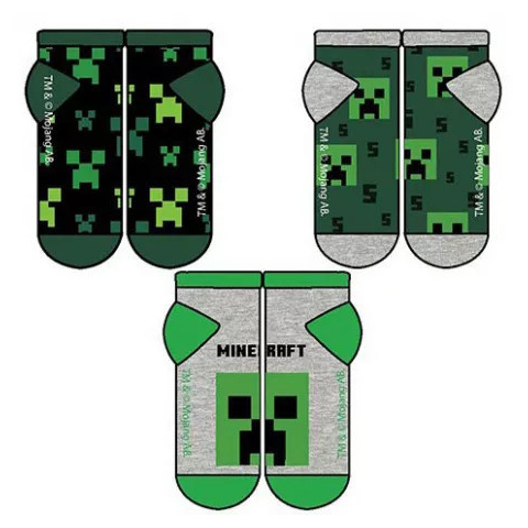 Minecraft gyerek titokzokni Az ár 3 pár zoknira vonatkozik! Anyaga: 70% pamut + 28% poliészter + 2% elasztán. 3 féle minta! Méret: 31/34