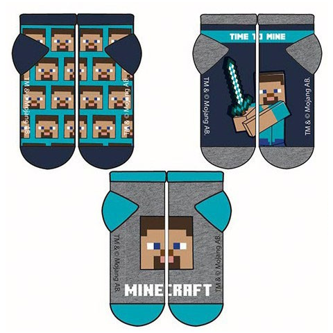 Minecraft gyerek titokzokni Az ár 3 pár zoknira vonatkozik! Anyaga: 70% pamut + 28% poliészter + 2% elasztán. 3 féle minta! Méret: 27/30