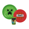 Minecraft étkészlet, műanyag-BPA Mentes-Származási ország: Spanyolország-A termék környezetbarát, újrahasznosítható anyagból készült a Föld védelmében.Csomagolás nélkül!Nem mikrózható!A szett tartalma:1 db mélytálka1 db lapostányér1 db pohár 260 mlA termék anyaga: műanyag.