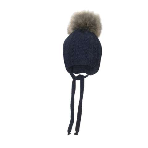 1 kép MiniM Bébi sapka bojtos téli kötött - Kék / Csillag emblémával 38-40