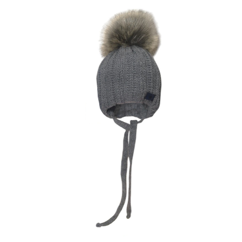 1 kép MiniM Bébi sapka bojtos téli kötött - Szürke / Csillag emblémával 38-40