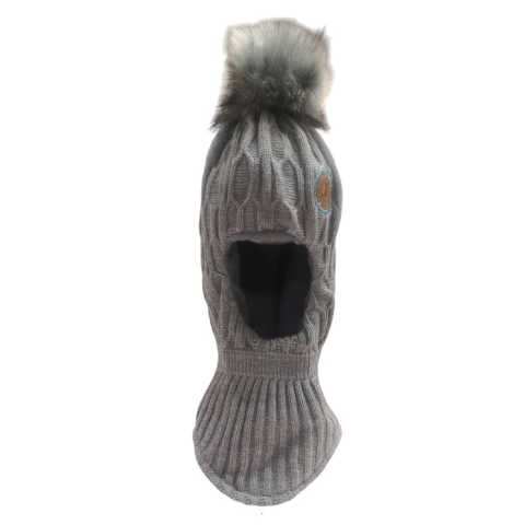 1 kép MiniM Gyerek kötött bojtos csősapka - Szürke - Dinó emblémával 50-52