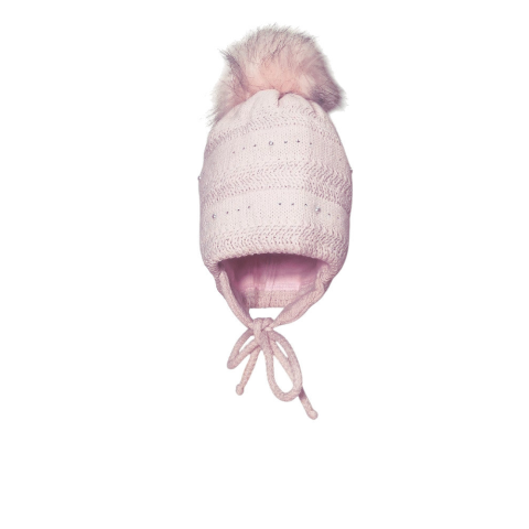 1 kép MiniM Gyerek sapka bojtos téli kötött - Rózsaszín / Strasszos, gyöngyös 46-48