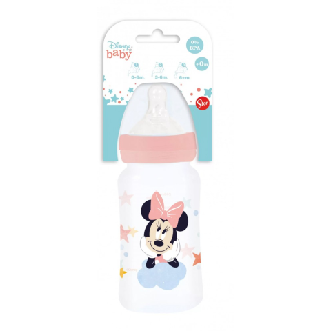Disney Minnie Baba Cumisüveg 2,4 dl Anyaga: műanyag Méret: 17x8,5 cm Űrtartalom: 2,4dl (8 oz) BPA mentes Széles nyakú cumisüveg szilikon cumival 3 pozíciós.(0-6 hó, 3-6 hó, 6+ hó) A terméket mikrohullámú sütőben ne használjuk, ne tisztítsuk mosogató