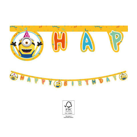 Minions The Rise of Gru, Minyonok, Happy Birthday felirat Mérete: 2 méter Anyaga: papír FSC (Forest Stewardship Council)