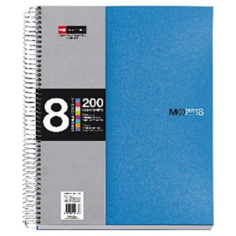 - 70 g-os ofszet nyomású hófehér belívek - 8x25 lapos, nyolc színregiszteres - Színes PP borító - Mikroperforált és lyukasztott lapok - Visszaforduló spirálozási technika - Típus: A4 vonalas