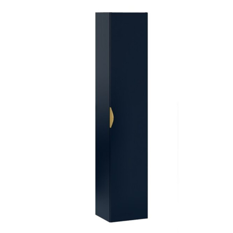 Mirano Vera II. generációs fürdőszobai magasszekrény. Falra szerelhető kivitel, kék szín, arany fogantyúkkal, fehér belső bútorlappal, belső polcokkal. 16 mm vastag front bútorkapok és korpusz. Az élek ABS élfóliával vannak lezárva, ami egyszerre esztétik