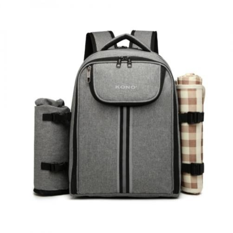 A KONO vászon szürke vízlepergető hátizsák egy nagy kapacitású piknik hátizsák, amely kiváló társad lehet egynapos kiránduláshoz. Az oldalán egy eltávolítható palacktartó található, amelyben könnyedén elfér egy borosüveg kedvenc boroddal. A táska másik oldalán találsz egy levehető terítőt, amely elengedhetetlen piknik kellék.