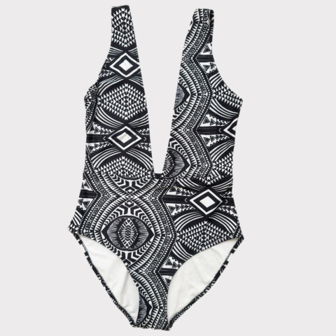 Mély kivágású fürdőruha Rugalmas, sztreccs anyag. Hibátlan állapotú.