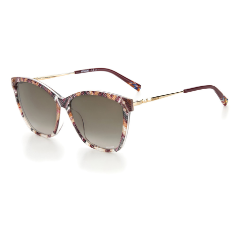 A(z) MISSONI napszemüveg Női viseletre ajánlott. A Műanyag keret tartós és kényelmes viseletet biztosít, a(z) Barna lencsék pedig stílusos megjelenést nyújtanak. Méretei: Lencse szélessége: 56 mm, híd szélessége: 14 mm, szár hossza: 140 mm. Lencse