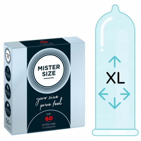 Élvezd a maximális szabadságot és kényelmet a MISTER SIZE XL óvszerekkel! Szuper vastag, 60 mm-es méret, amely garantálja a biztonságot és az élvezetet egyaránt! Bújj bele a prémium, érzéki pillanatok világába! Fedezd fel az élvezet új dimenzióját a MI