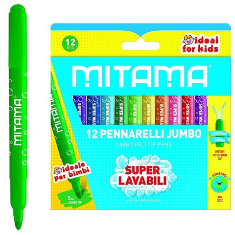 Mitama JUMBO, omyvatelné, 5 mm, kulaté - sada 12 barev filctoll, marker termékleírás