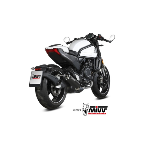 FIGYELEM: Karbon hővédő lemez tartozékA MIVV slip-on kipufogók úgy lettek tervezve, hogy javítsák a motorkerékpár megjelenését, hangját és teljesítményét. A maximális dizájn-fókusz eredményeként azok számára készültek, akik szeretnének kitűnni motorjukkal.Az HR-1 sorozat kipufogói kör alakú kialakításúak, különleges megjelenésű fekete szegecsekkel szerelve. A végzáró kupak kerámiafekete festett alumíniumból vagy "twill 3K look" karbonból készülhet.