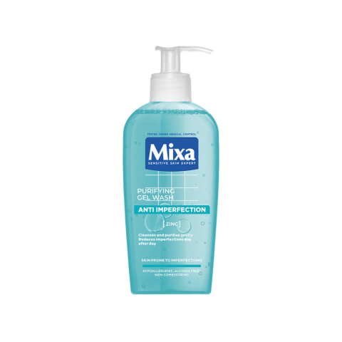 Mixa Anti-Imperfection arctisztító gél bőrhibákra hajlamos bőrre: eltávolítja a szennyeződéseket és a felesleges faggyút. Tisztító cink PCA-val gazdagítva mélyen megtisztítja a pórusokat és segít csökkenteni a bőrhibák láthatóságát. Alaposan megtisztítja,