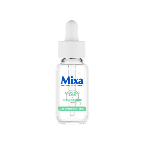 Mixa Anti Imperfection tökéletlenségek elleni szérum a pattanások és a pórusok láthatóságának csökkentéséért. Mixa Anti Imperfection tökéletlenségek elleni szérum egymást kiegészítő aktív összetevőkkel gazdagítva: szalicilsav és niacinamid. A szalicils