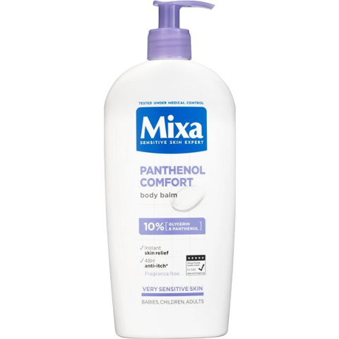 Testápoló - hidratáló, hipoallergén, védő, tápláló és nyugtató, viszkető bőrre és száraz bőrre, atópiás, ekcémás, érzékeny és száraz bőrre ajánlott, alkoholmentes és illatmentes, pumpás adagolóval, hatóanyaga glicerin és panthenol, 400 ml-es kiszerelésben A Mixa Panthenol Comfort egy nyugtató testápoló tej nagyon érzékeny, viszketésre hajlamos bőrre. Gazdagítva van Panthenollal, amely nyugtató hatásáról ismert, valamint glicerinnel, amely intenzív hi