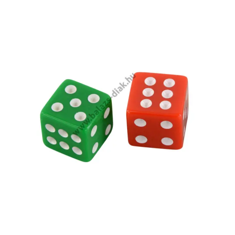 Hagyományos dobókocka, több színben, amely használható játékokhoz, illetve alsó tagozatos matematika oktatáshoz.