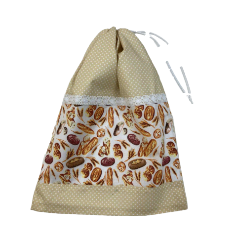 1 kép MK Bea Behúzós kenyeres zsák – bézs pöttyös és pékáru mintás