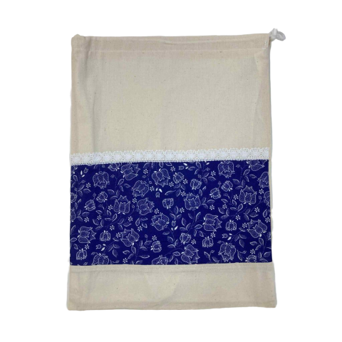 1 kép MK Bea Behúzós kenyereszsák – kék tulipán mintás