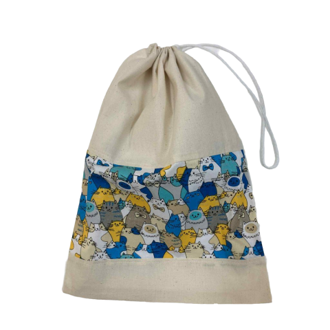 1 kép MK Bea Behúzós zsák – cicás mintával kék-sárga színvilágban