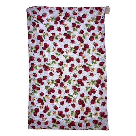 1 kép MK Bea Behúzós zsák – epres mintás, pamut és PUL bélés