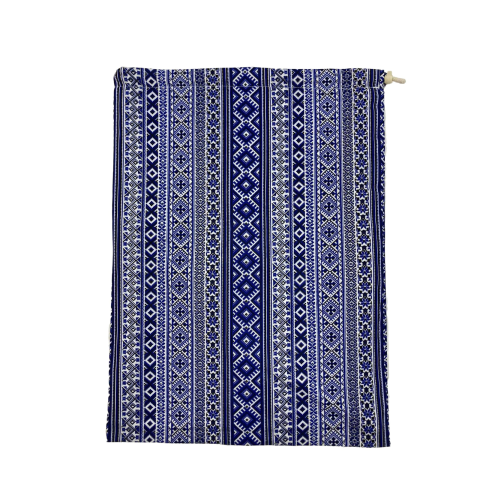 1 kép MK Bea Behúzós zsák – kék-fehér geometriai mintás pamut PUL béléssel