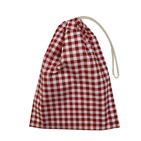 Ez a piros-fehér kockás mintás pamutból készült behúzós kenyeres zsák a klasszikus konyhai textíliák hangulatát idézi. PUL bélése biztosítja, hogy a kenyér és a péksütemény hosszabb ideig megőrizze frissességét, miközben a zsák higiénikus és könnyen tisztítható. Mosógépben mosható, strapabíró kialakítása miatt hosszú távon is használható. Ideális kenyértároláshoz, de uzsonnás- vagy tárolózsákként is kiváló választás. Környezetbarát, újrah
